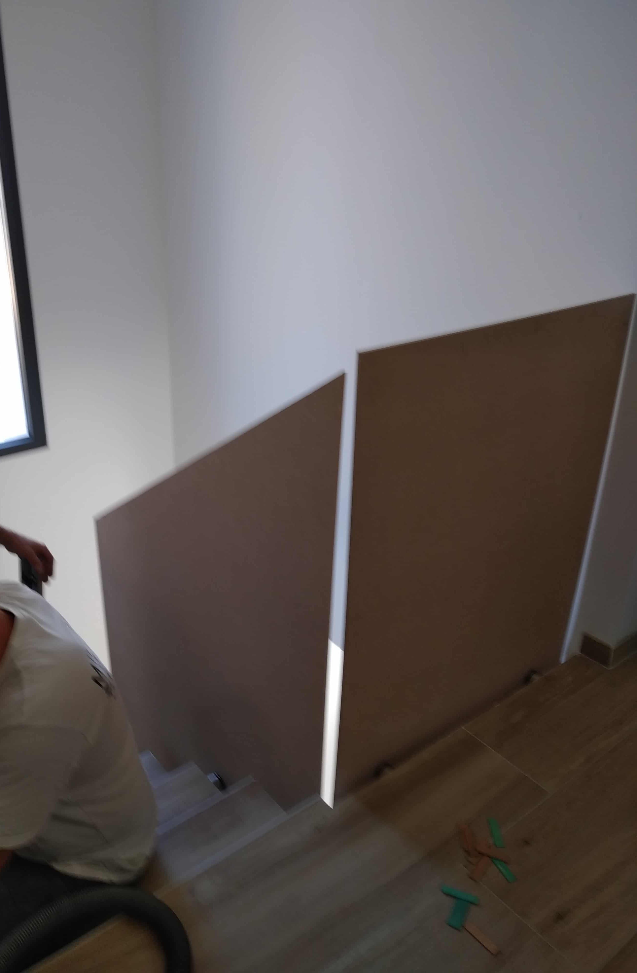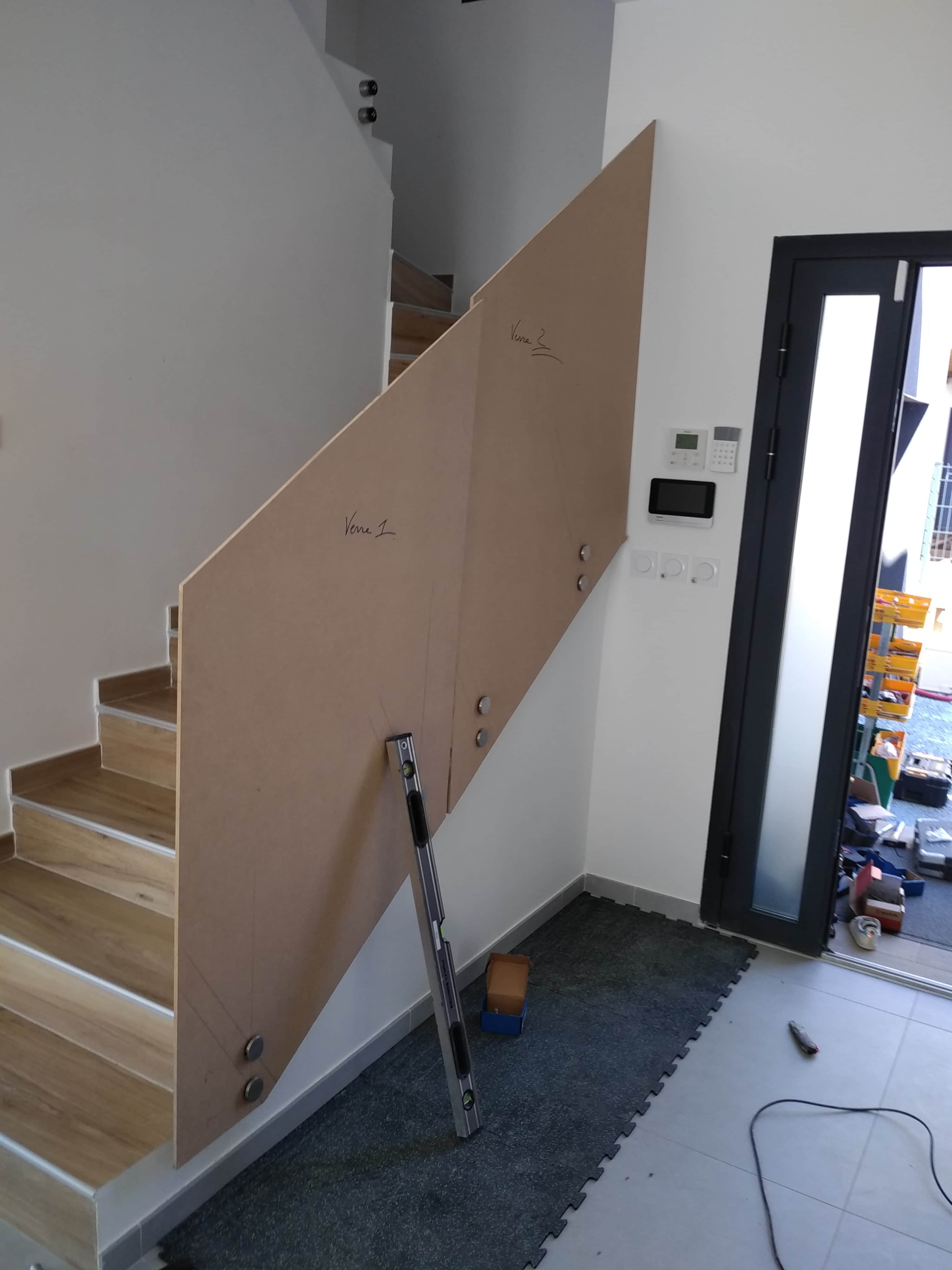 - Nous poursuivons avec la pose des gabarits au niveau de l’escalier