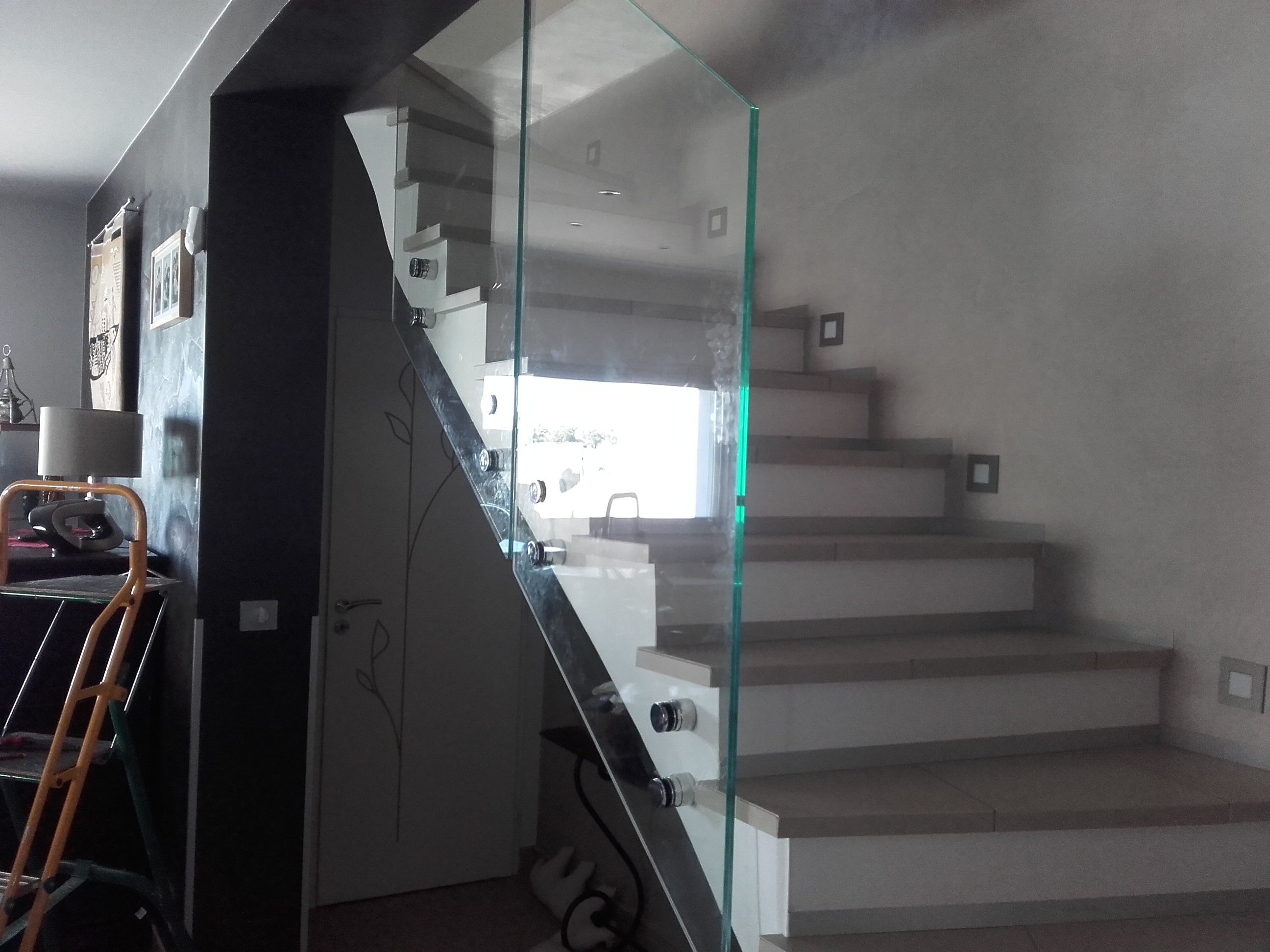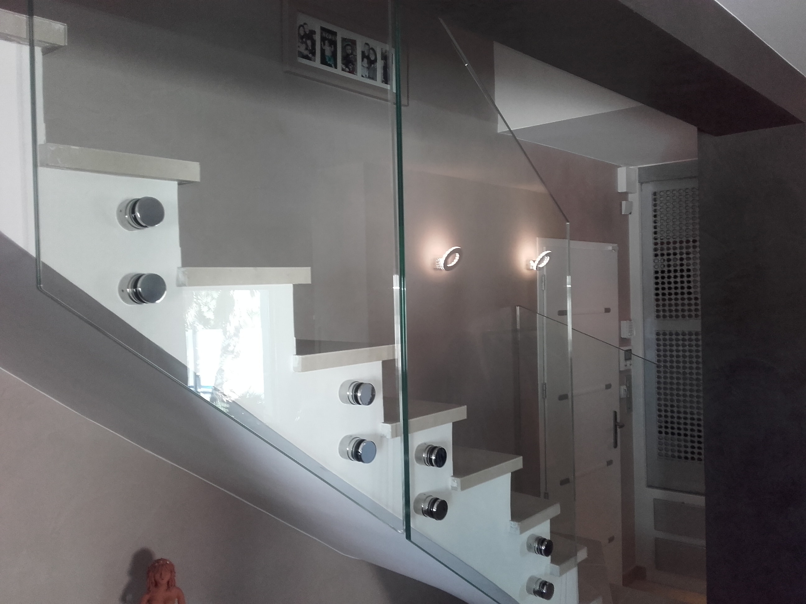 Rampes d’escalier en verre : pour sécuriser des rampes d’escalier tout en préservant l’esthétique de la transparence du verre. La fixation par points permet d’assurer une fixation solide.