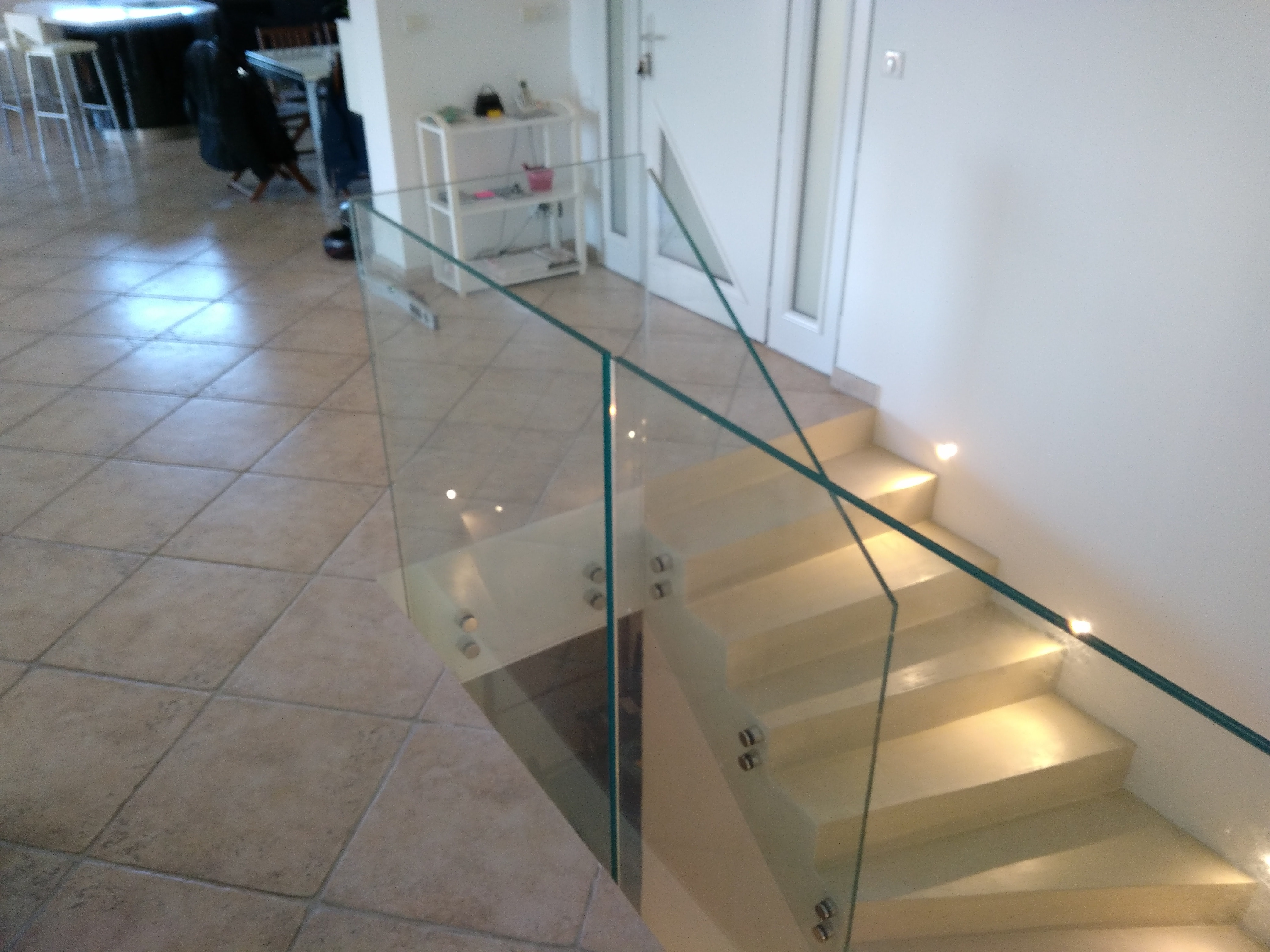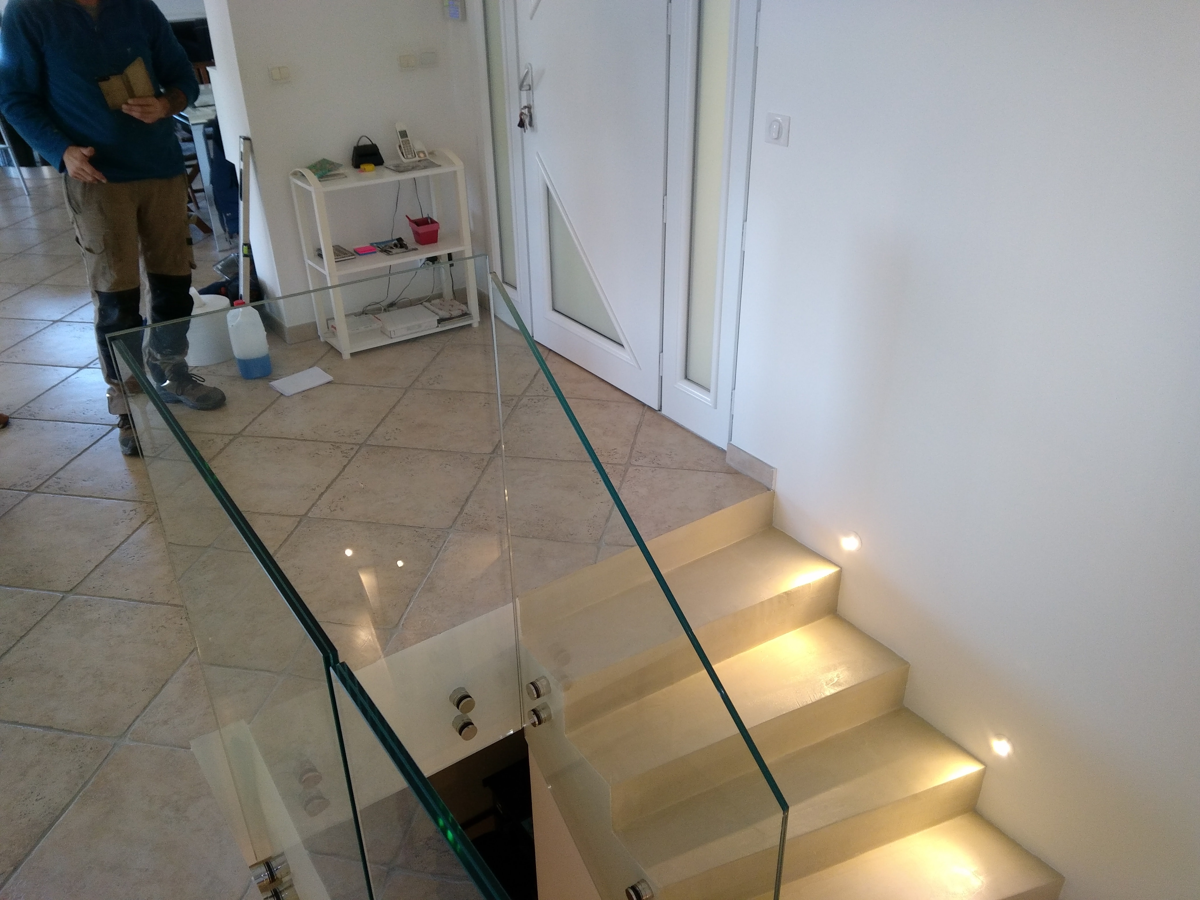 Découvrez ci-dessous, les photos de l’avancée des travaux, et de la pose de la rambarde d’escalier en verre terminée. Cette nouvelle protection apporte un aspect moderne ainsi qu’une meilleure luminosité à l’espace du client: